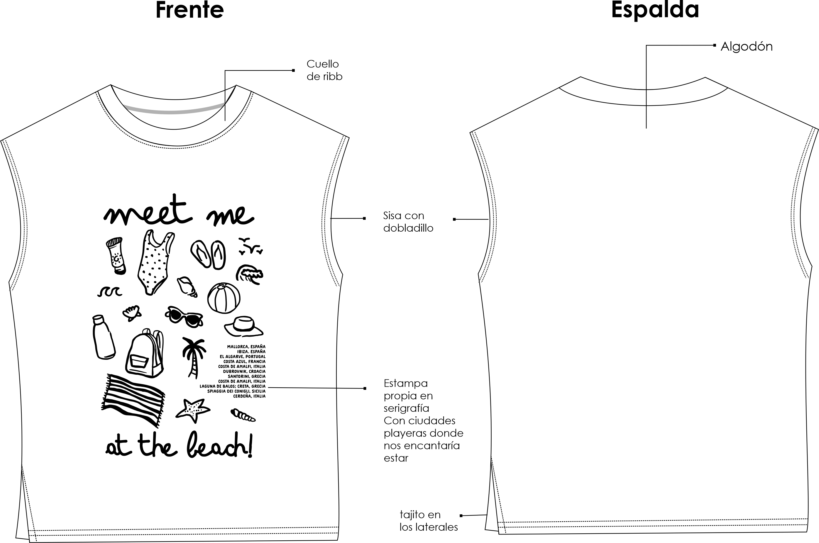Una remera sin mangas fresca, divertida y hecha para la acción. Con estampa diseñada por LOL que muestra todo lo que llevamos a la playa para un día soñado.